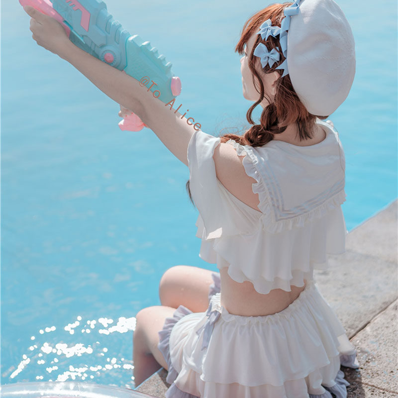 Swimsuits for women with summer split fairy-like small breasts, cute Japanese navy Fengshui hand-collar hot spring student cute swimsuit
