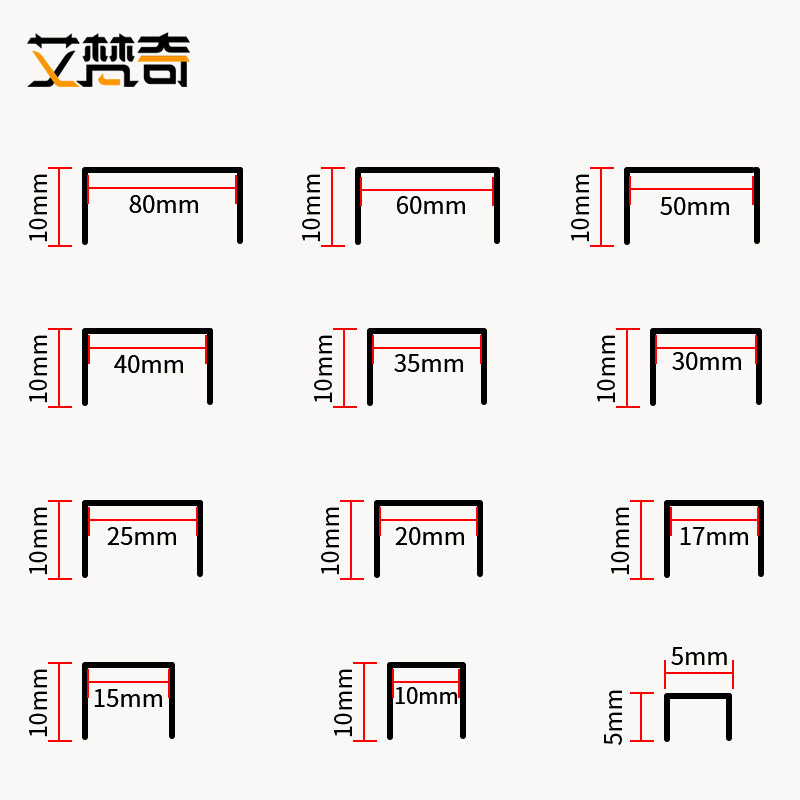U-shaped outer width 5x5mm matte surface (take note color) U-shaped inner width 10x10mm matte surface (take down the note color) U-shaped inner width 15x10mm matte surface (take down the note color) U-shaped inner width 17x10mm matte surface (take down the note color) U-shaped inner width 20x10mm matte surface (take the note color) U-shaped inner width 25x10mm matte surface (take the note color) U-shaped inner width 30x10mm matte surface (take down the note color) U-shaped inner width 35x10mm matte surface (take note color) U-shaped inner width 40x10mm matte surface (take down the note color) U-shaped inner width 50x10mm matte surface (take down the note color) U-shaped outer width 60x10mm matte surface (take the note color) U-shaped outer width 80x10mm matte surface (take the note color) U-shaped inner width 10x10mm bright surface (take the note color) U-shaped inner width 15x10mm bright surface (take the note color) U-shaped inner width 17x10mm bright surface (take down the note color) U-shaped inner width 20x10mm bright surface (shoot down the note color) U-shaped inner width 25x10mm bright surface (shoot down the note color) U-shaped inner width 30x10mm bright surface (take down the note color) U-shaped inner width 35x10mm bright surface (take down the note color) U-shaped inner width 40x10mm bright surface (shoot down the note color) U-shaped inner width 50x10mm bright surface (shoot down the note color) U-shaped outer width 60x10mm bright surface (take down the note color) U-shaped outer width 80x10mm bright side (shoot the note color)