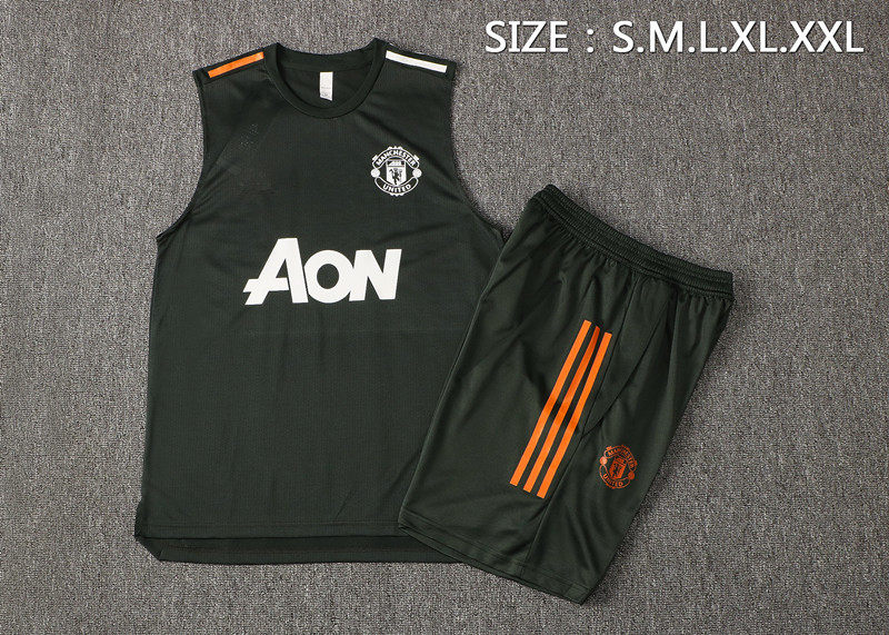 21-22 Manchester United football uniform vest training team uniform military green sleeveless Thai Jersey five-point pants set men