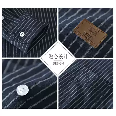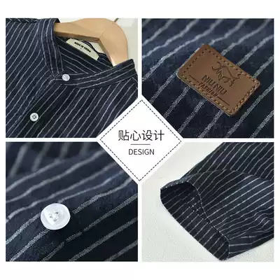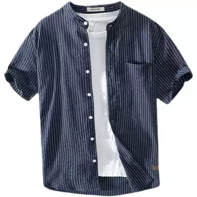 Mingshi wind cotton shirt men's summer thin loose breathable casual stand collar cotton striped men's short sleeve shirt