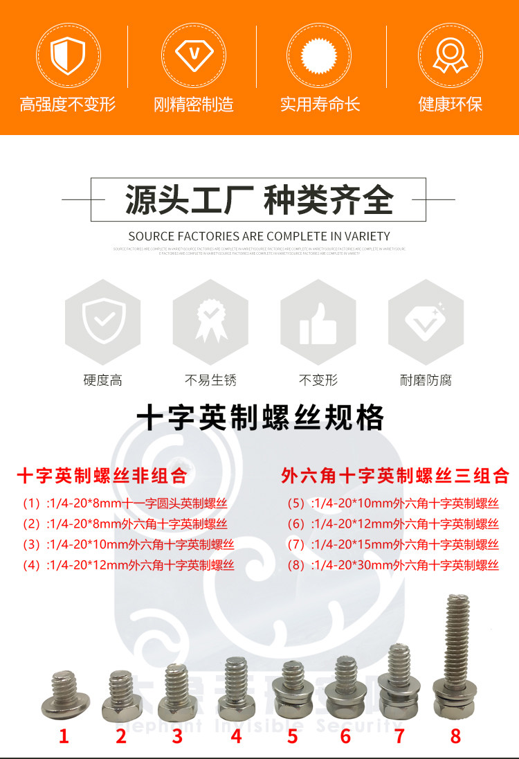 304 stainless steel M6 screw surveillance camera 1 4 - 20 outside hexagon cross three combination of English screws