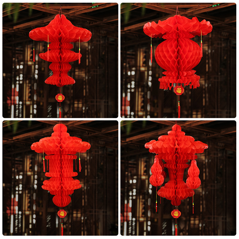 New Year's Spring Festival Lights Hanging Plastic Buff Honeyhoneycomb Lantern New Year Festival Festival Decoration