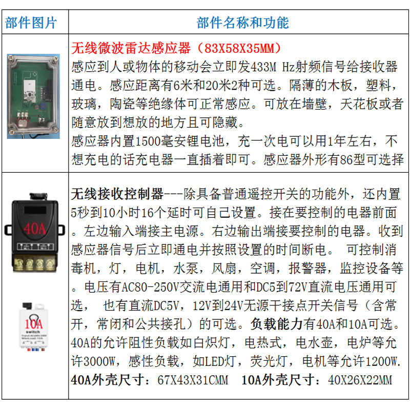 AC40A receiver wireless waterproof microwave sensor AC10A receiver wireless waterproof microwave sensor DC40A receiver wireless waterproof microwave sensor DC10A pick up