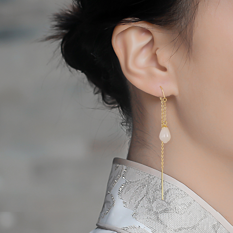 And Tian Yuorchid 99 pure silver ear necklace (gift box dress) and field jade orchid 99 pure silver ear necklace