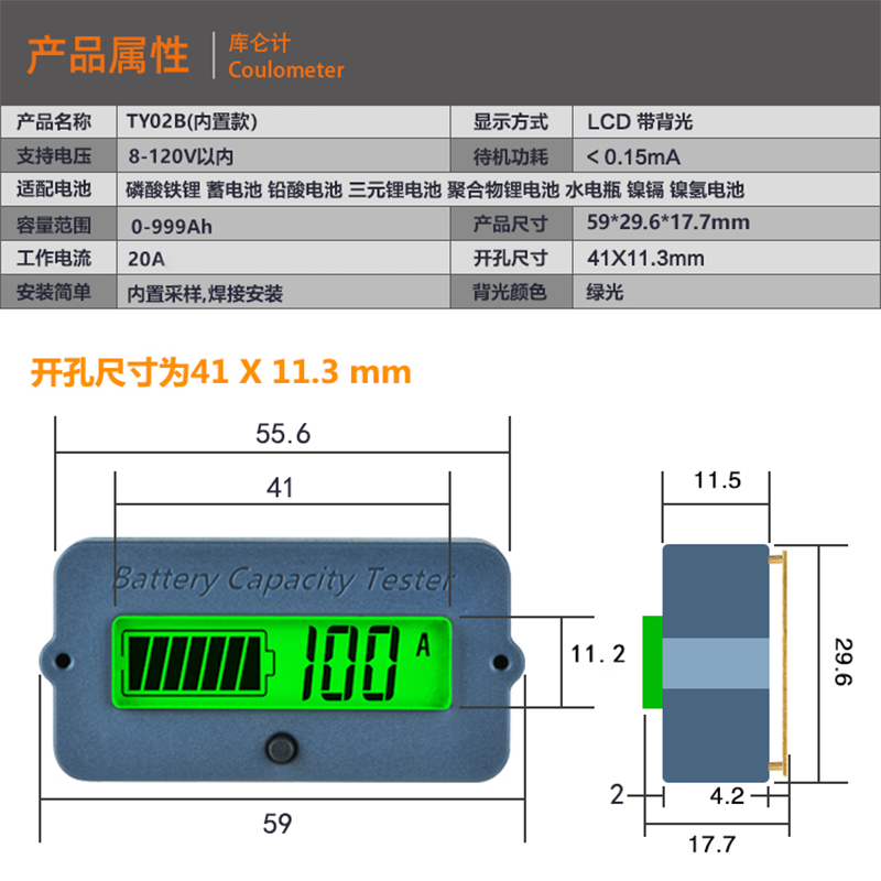 TY02B Coulomb meter RMBthree lithium battery lithium iron phosphate lead-acid battery power display voltmeter coullenometer