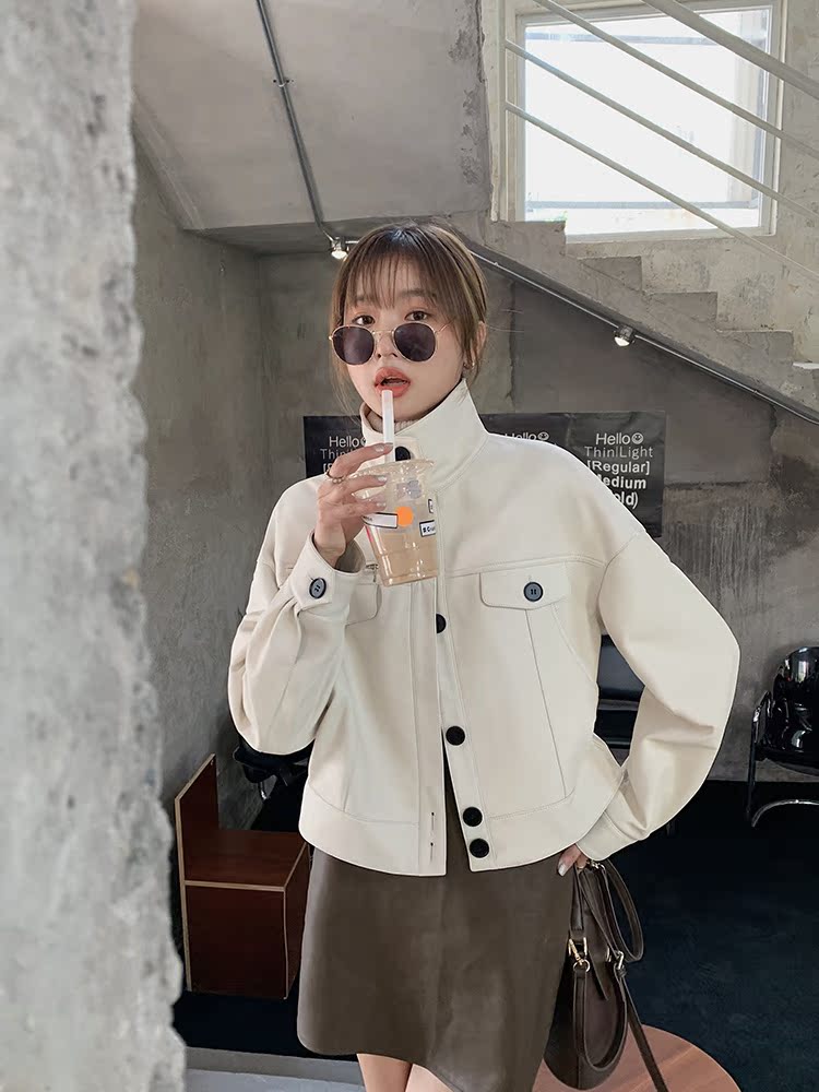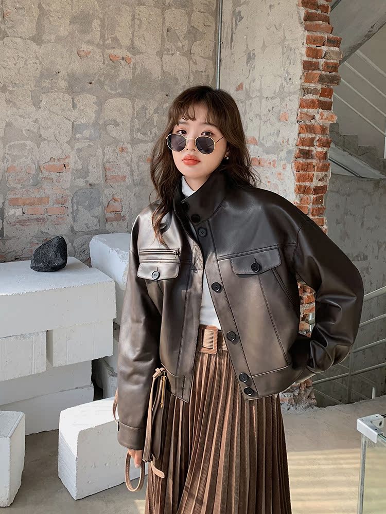 2021 autumn new leather jacket short temperament Spain imported cotton sheepskin jacket coat ladies motorcycle