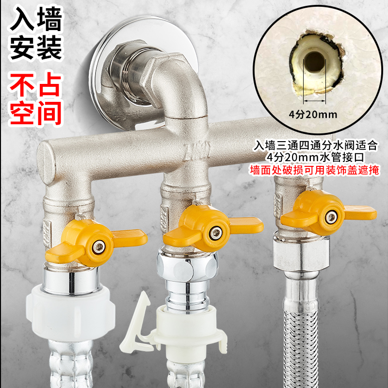 Angle valve in one-in-two out three-out three-way four-way large flow tap washing machine 10%-two-three-control water distributor