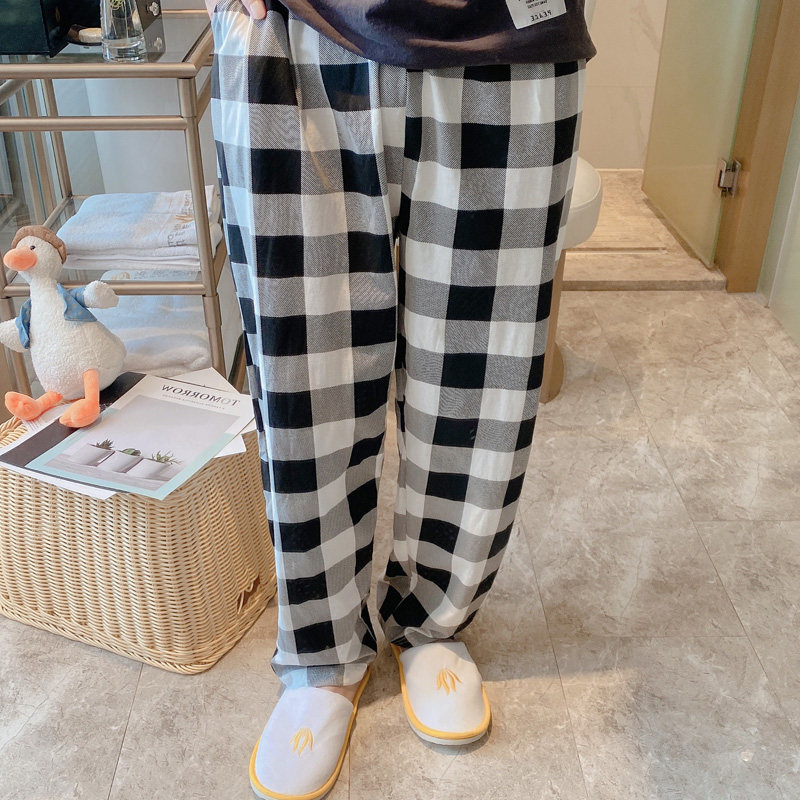 Spring Fall Pure Cotton Sleeping Pants Men Long Pants Large Size Loose Summer Thin minimalist Fashion Lovers Black Plaid Home Pants