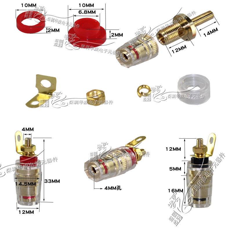 Pure Copper Gold Plated Sound Power Amplifier Sound Box Crystal Post Head Horn Wiring Terminal 4mm Banana Plug Socket-Taobao