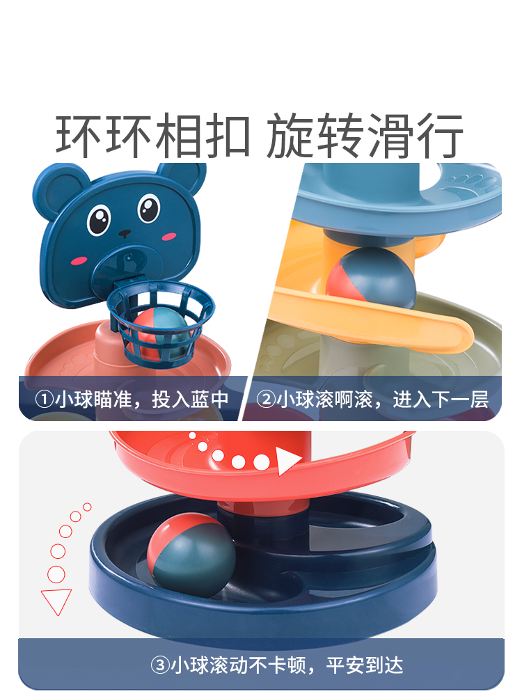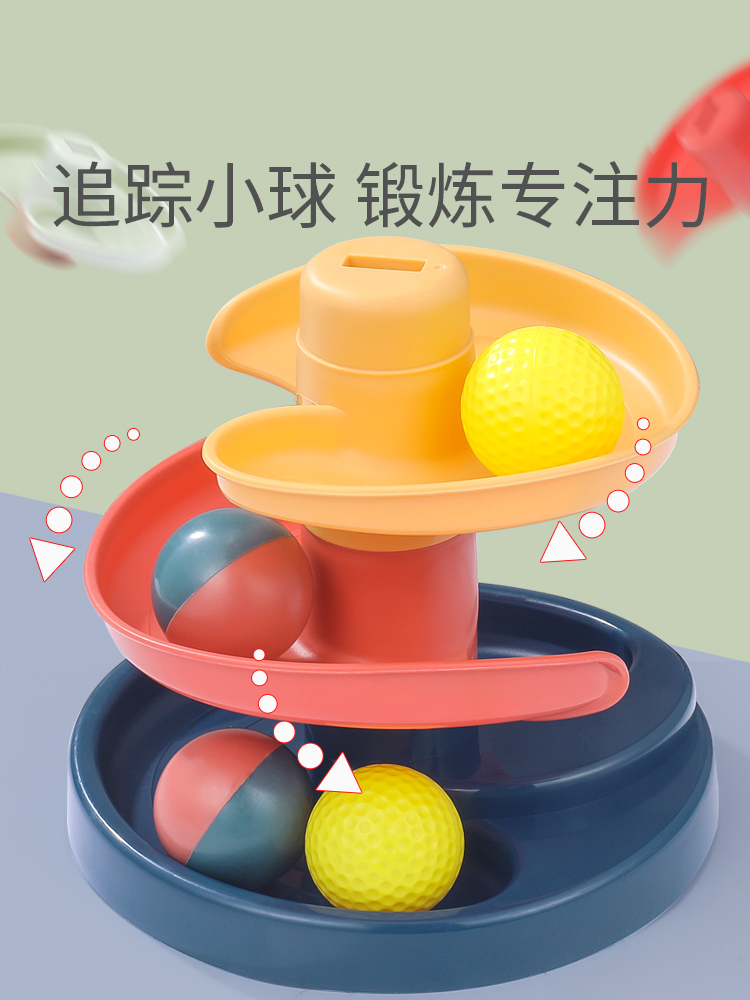 Children stacked shooting track roll ball skate tower baby fun early education turn fun 1-3 years old 2 toys