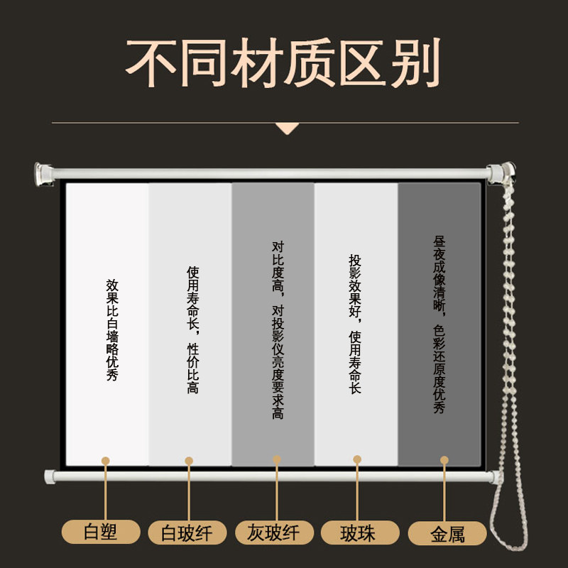 Customized rolling curtain curtain wall hanging wall hand-pulled projection curtain rolling curtain anti-light curtain 72 84 92 100 110 120 150 inch household manual curtain curtain projector