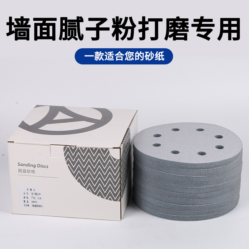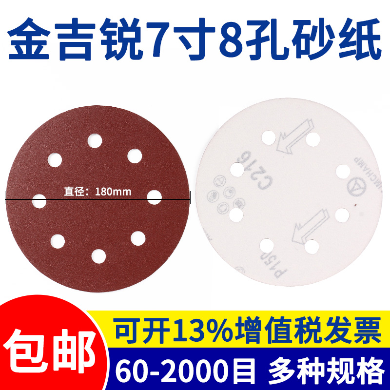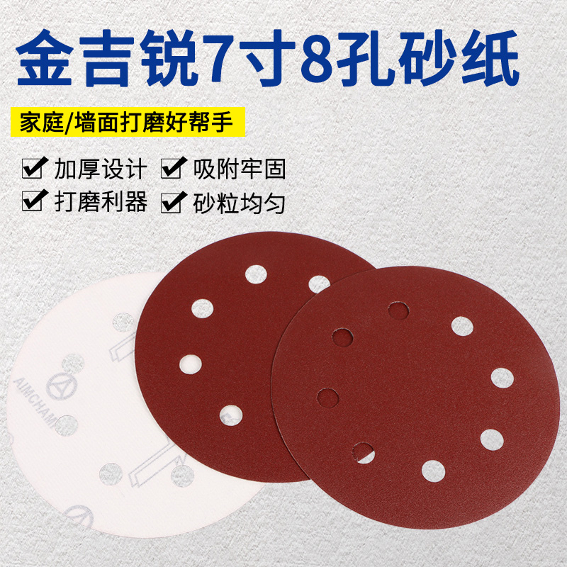 Jin Jirui 7-inch 8-hole flocking sandpaper white sand 180mm wall batch soil furniture round grinding and polishing sandpaper sheet