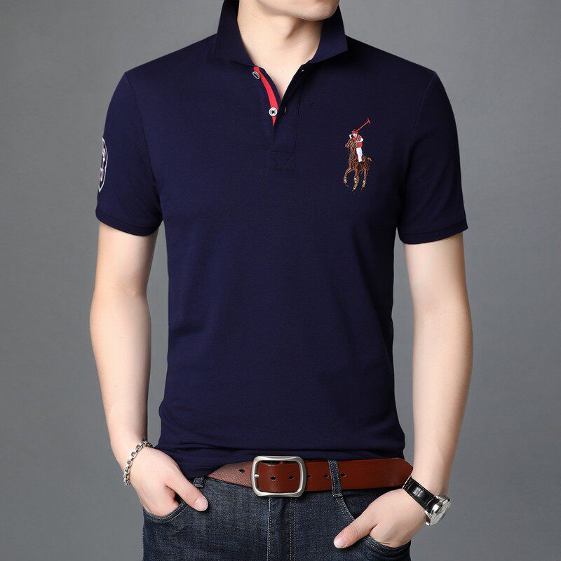 Polo shirt men's short-sleeved lapel cotton T-shirt business casual embroidery half-sleeved T-shirt loose formal short-sleeved top male