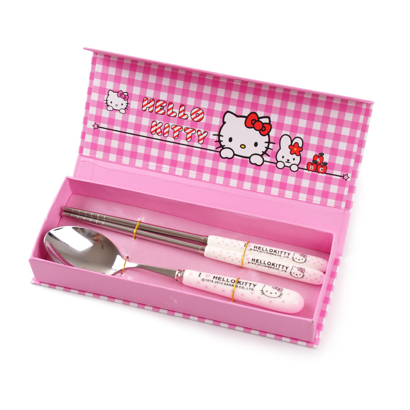 hello kitty cute cartoon ceramic handle tableware chopsticks spoon tableware 2-piece set gift box
