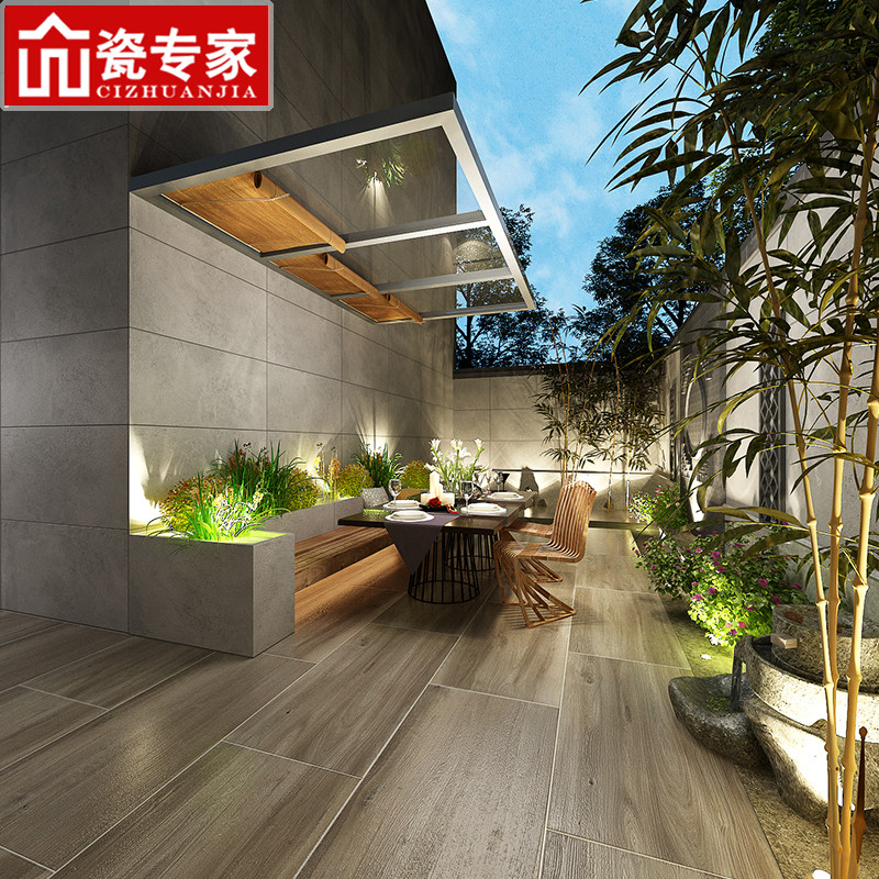 Garden yard terrace wood grain brick retro American all-porcelain 600x1200 imitation solid wood floor tile balcony floor tile