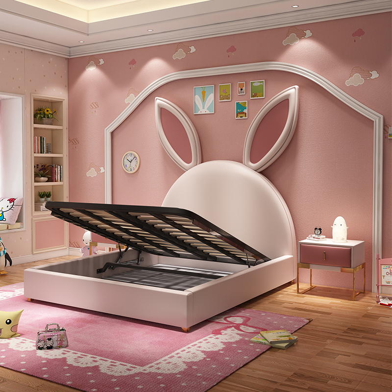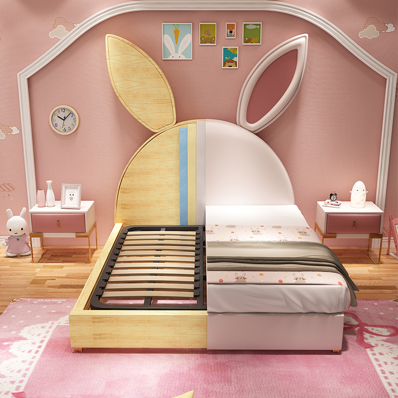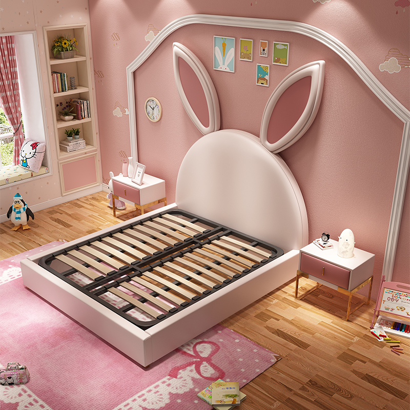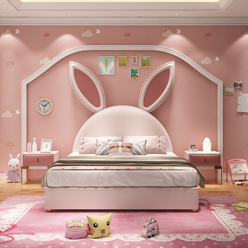 Internet celebrity light luxury ins creative pink girl princess technology fabric rabbit bed 1 8 meters solid wood children's room furniture