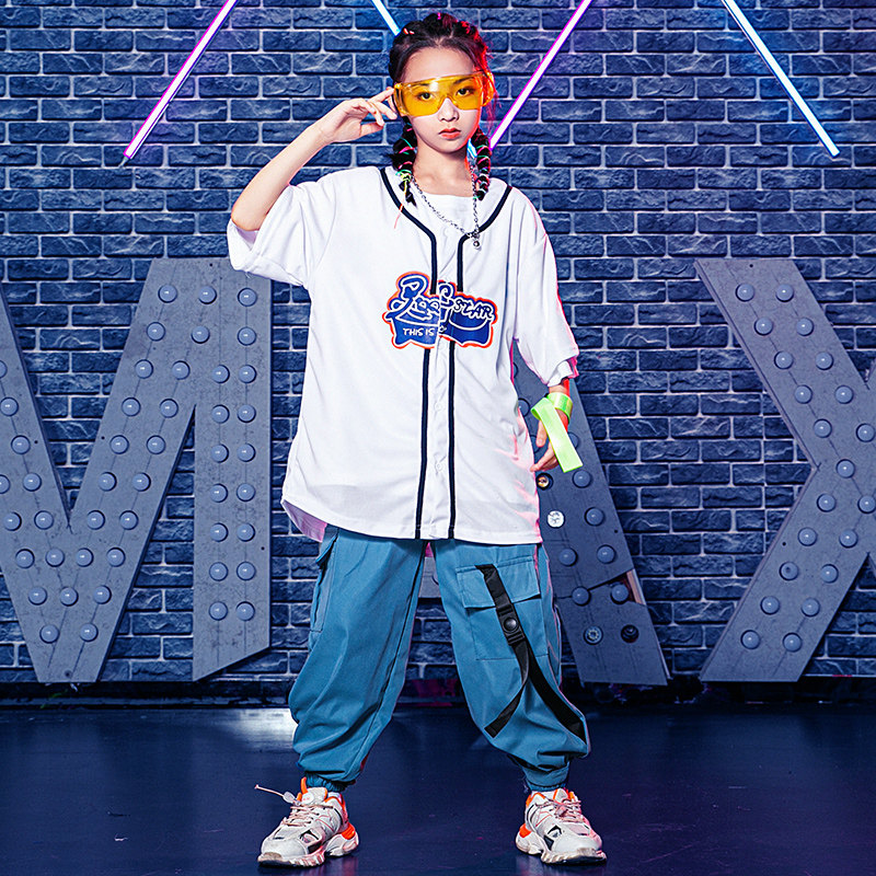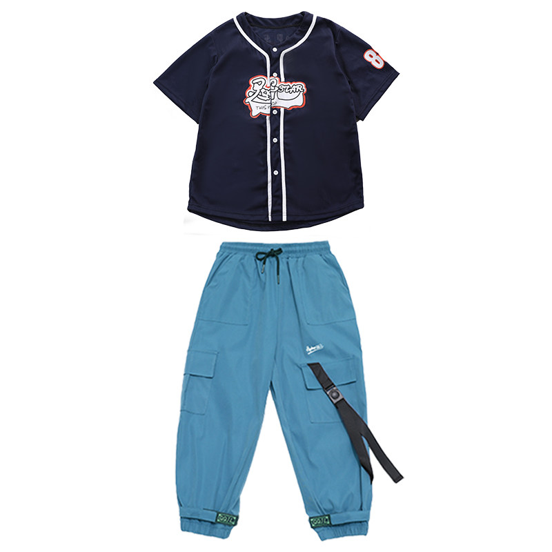 Young child hiphop short sleeve clothing children street dance hip hop suit boys and girls dress rack drum show in summer