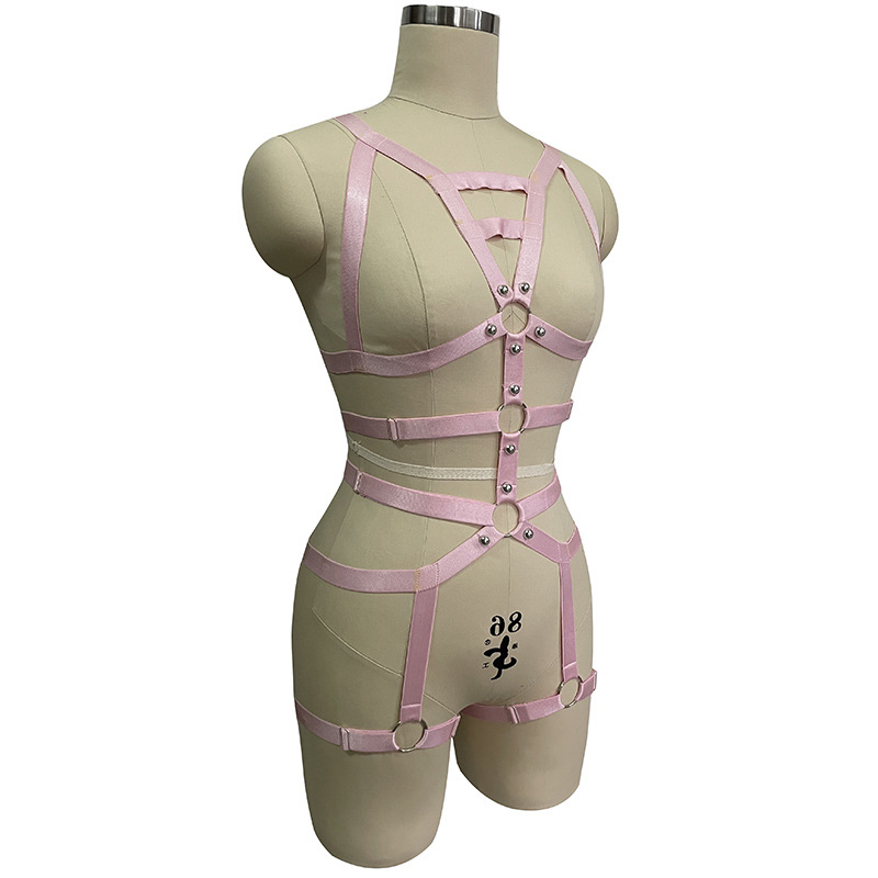 Pink cross strap harness underwear prom sexy fun suit female temptation emotional one-piece garter belt girdle