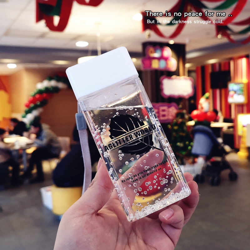 Simple and compact square water cup personality accompanying cup creative portable plastic cup creative leaf fresh leak-proof cup