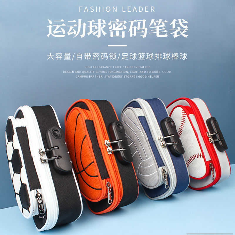 Hand Pen Pouch Pencil Case PENCIL CASE CODE LOCK LEAD PENCIL CASE MULTIFUNCTION NEW CREATIVE LITTLE CROWDLEARNING SUPPLIES MALE CHILDREN FOOTBALL BASKETBALL PEN BOX ELEMENTARY SCHOOL STUDENTS CHILDREN RESISTANT TO DIRTY LARGE CAPACITY WITH LOCK STATIONERY BAG