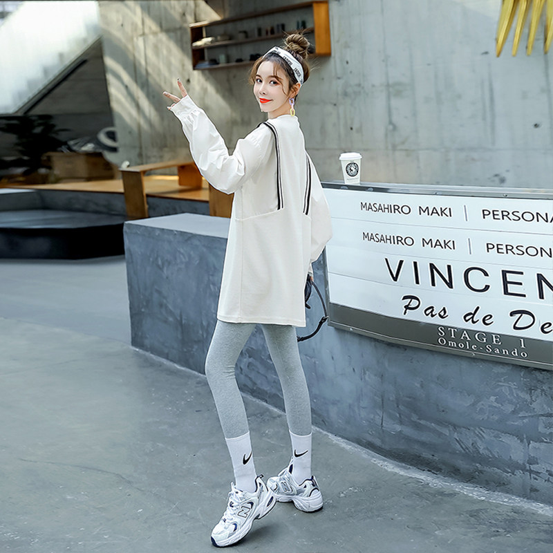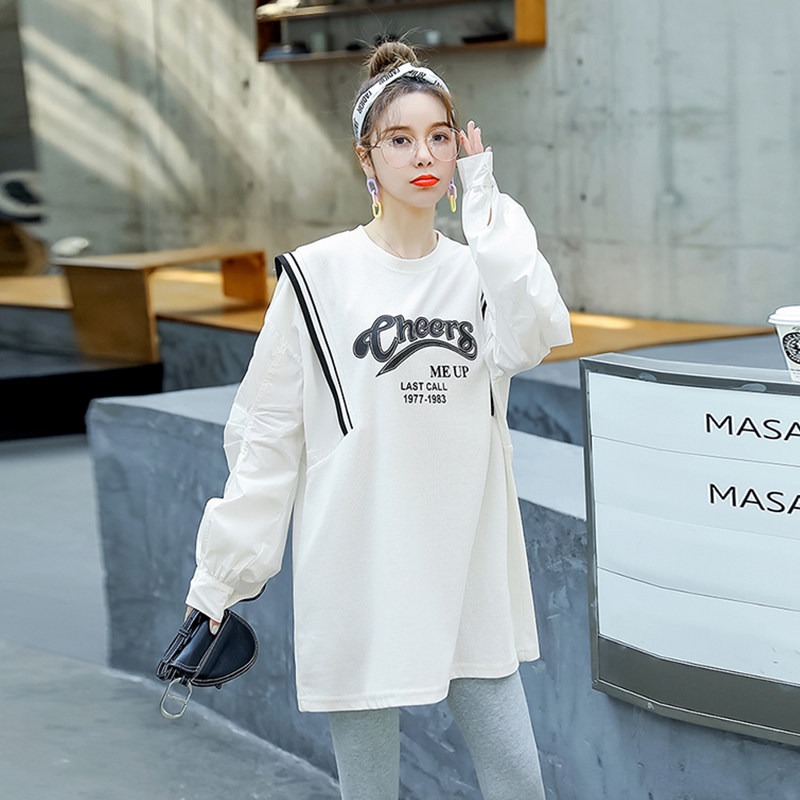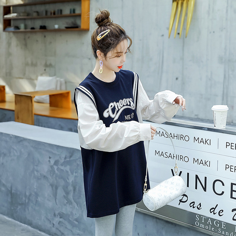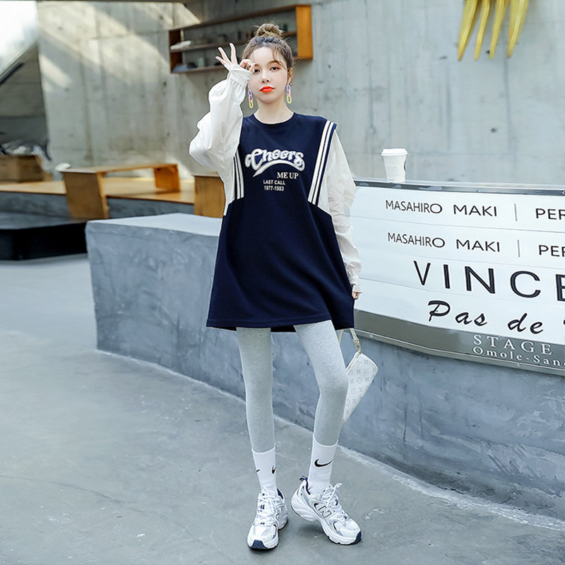 The Jing Kiri Gestational Woman Dress Foreign Dress 2022 Spring Autumn New thick cotton T dress Korean version Fashion loose large size Size Jacket Fake two