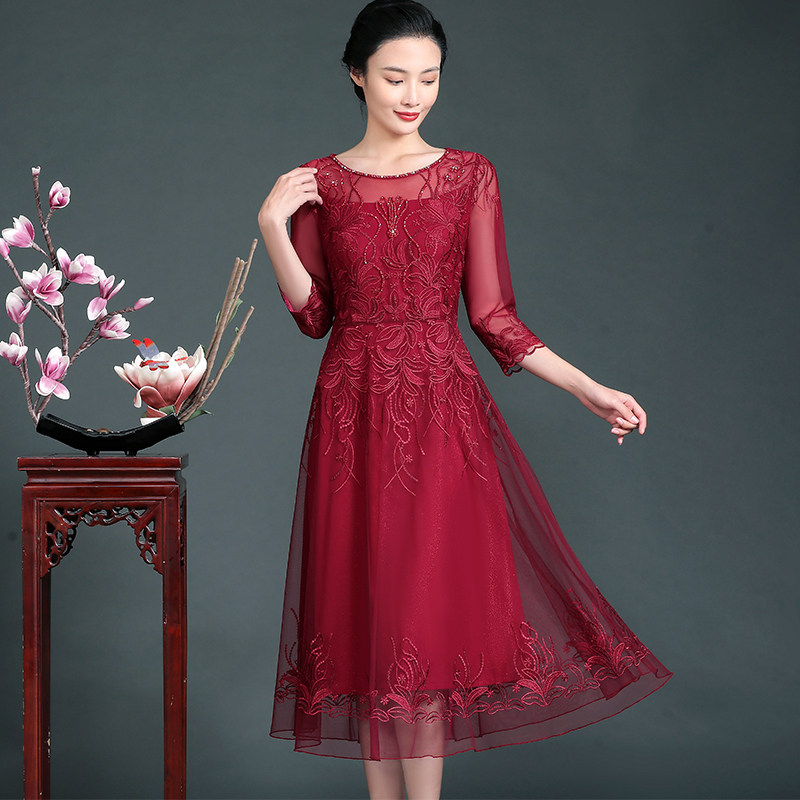 Wedding banquet happy mother dress wedding western style mother wedding mother-in-law red dress young toast mother-in-law