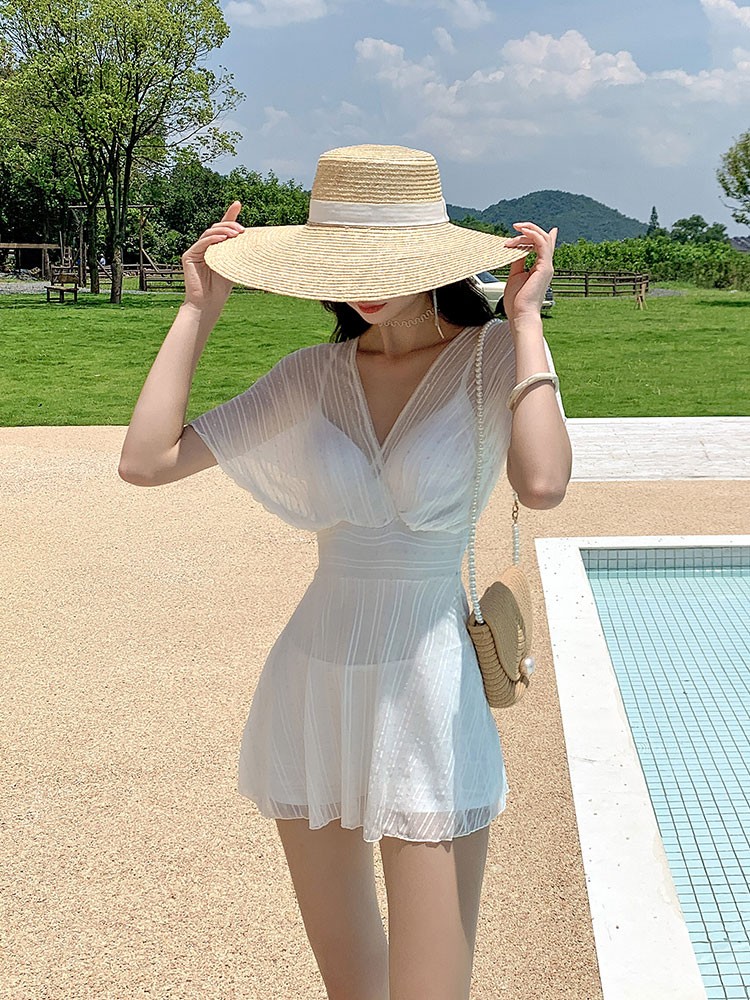 Skirt-style even for a swimsuit in a dress.