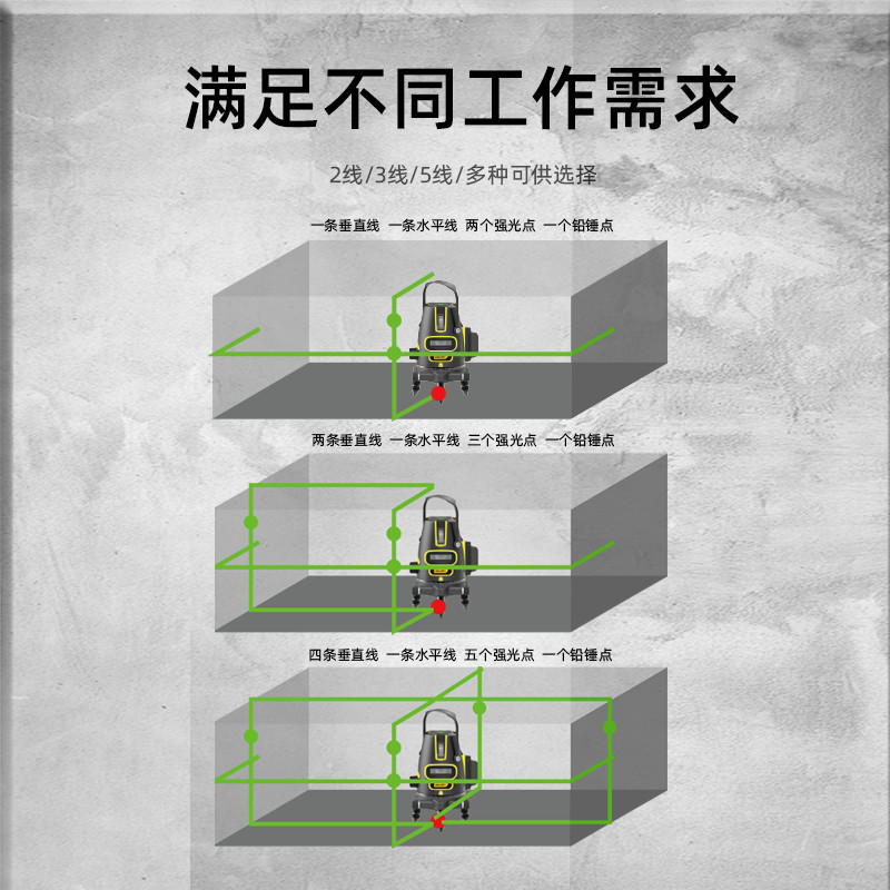 Powerful 2-line green light level meter high-precision strong light thin line laser automatic infrared wall height measurement tool