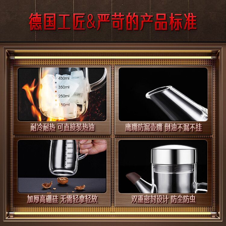 German SSGP glass oil jug kitchen oil bottle not hanging oil leak-proof oil tank pot home high-end bottling oil bottle with scale