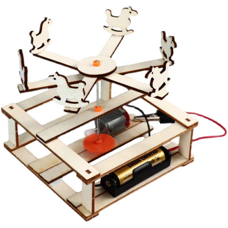 Science and technology small production primary school students diy assembled electric wind car wooden model material science experiment toys