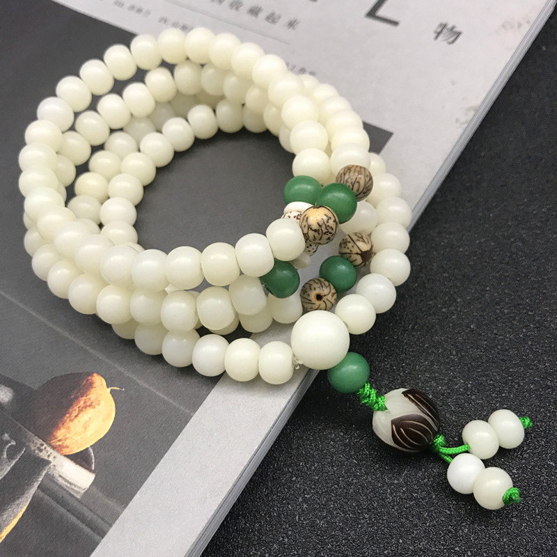 Original natural white jade Bodhi root bracelet high density natural Shunbai 108 white jade Bodhi Buddha beads bracelet necklace