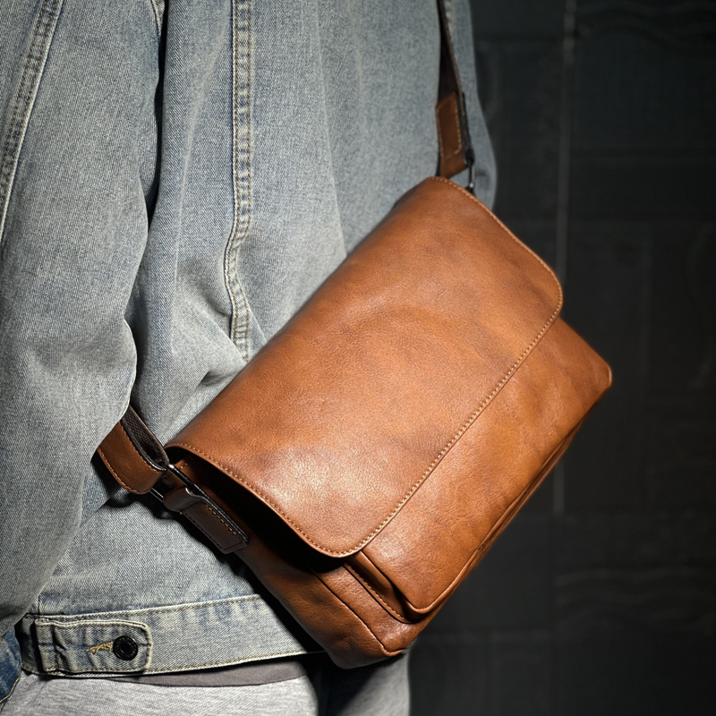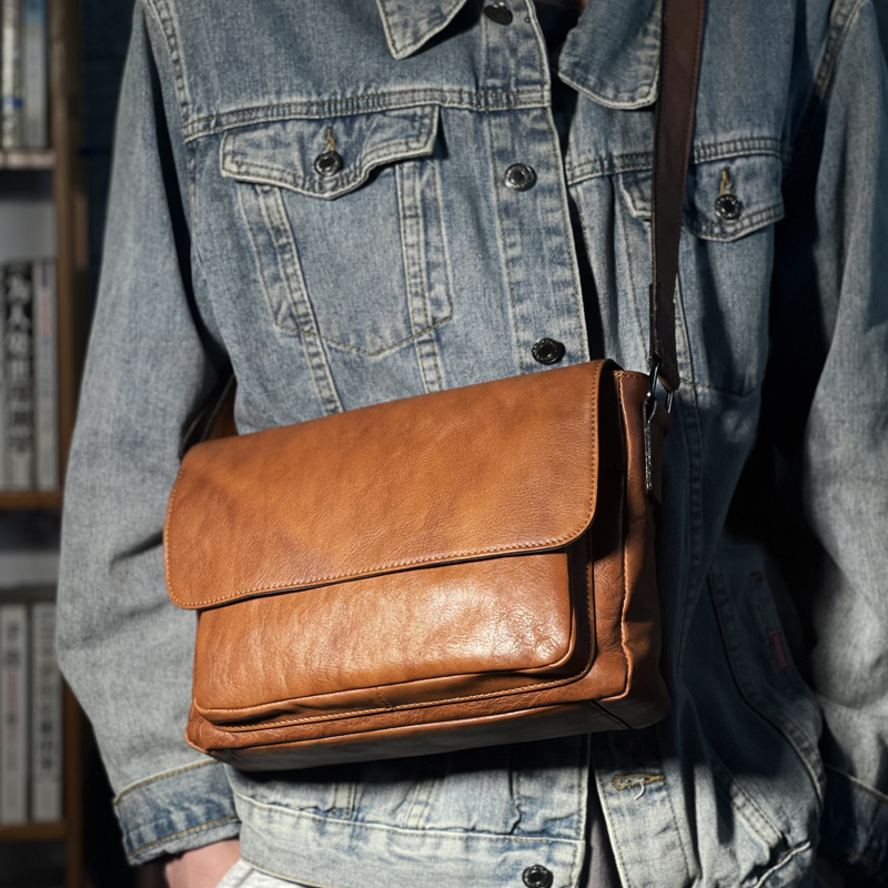 Handcrafted Color Genuine Leather Single Shoulder Bag Plant Tannic Leather Skew Satchel Casual Postman Bag Retro Head Layer Cow Leather Man Bag Light Extravagant-Taobao