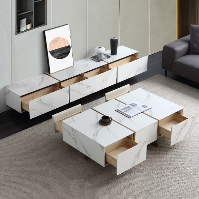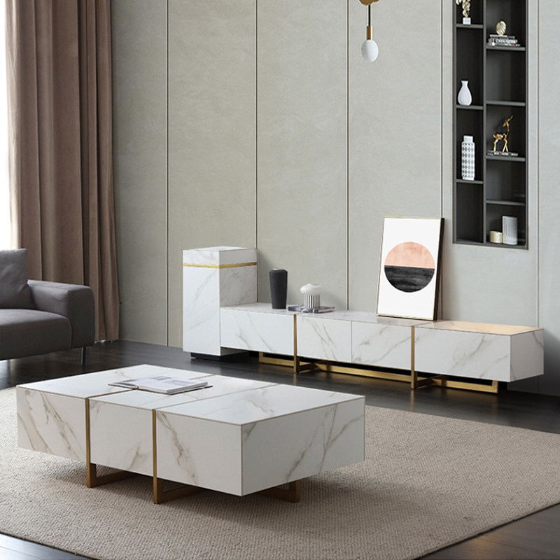 Italian light luxury rock board TV cabinet coffee table group home living room modern minimalist TV cabinet storage floor counter
