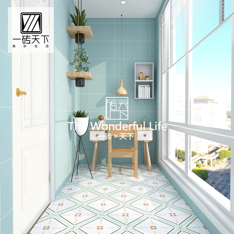 Nordic matcha green retro small flower tiles balcony powder room kitchen floor tiles small fresh garden tiles bathroom wall tiles