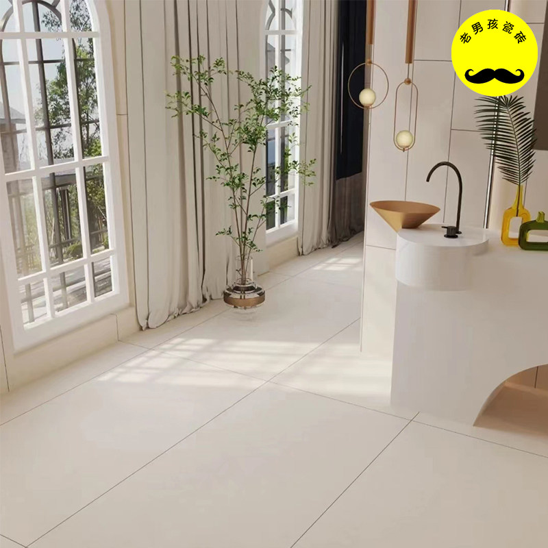 Micro cement tile wabi-sabi wind beige milky white 600x1200 plain soft light powder room wall brick living room matte