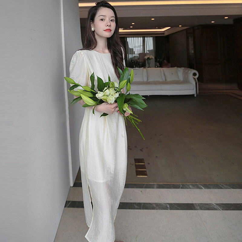 Day Faculty light extravaganza 2022 Summer new French style long dress Frosty Wind Advanced Sensation Cashew Blue Sky Silk Dress Woman
