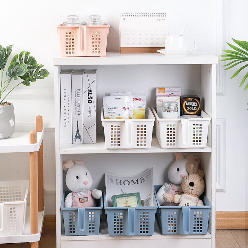 Rectangular desktop storage basket plastic with handle snack box bathroom bath basket kitchen sundries finishing basket SNP