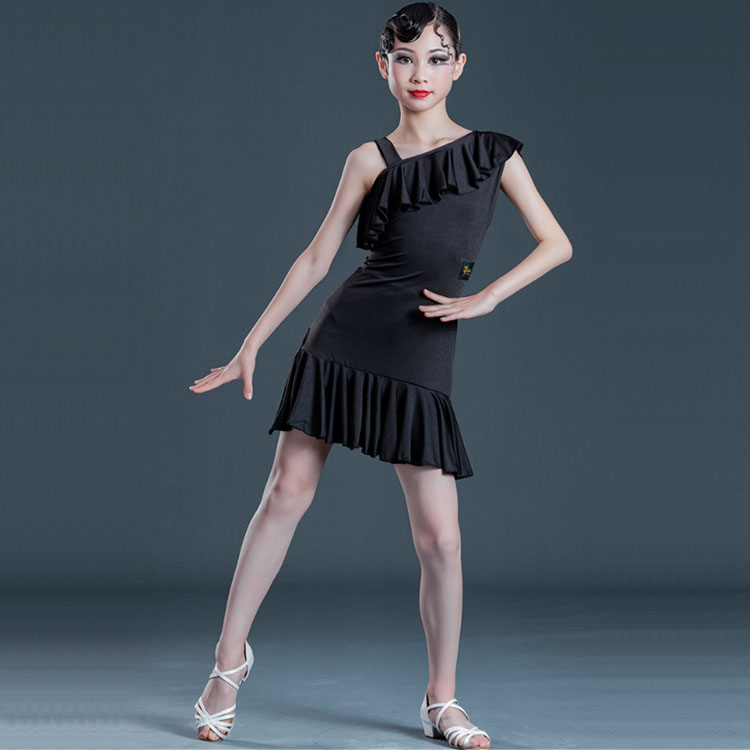 Latin Dance Exercises Girls' Summer Children Act Out of Inclined Shoulder Harness Dance Performance test for new foreign dress