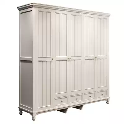 American solid wood wardrobe modern simple three-four-five-door bedroom storage cabinet household rubber wood white wardrobe