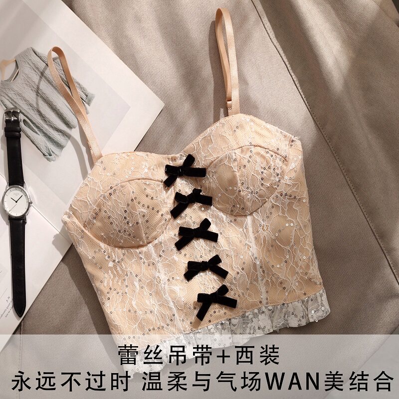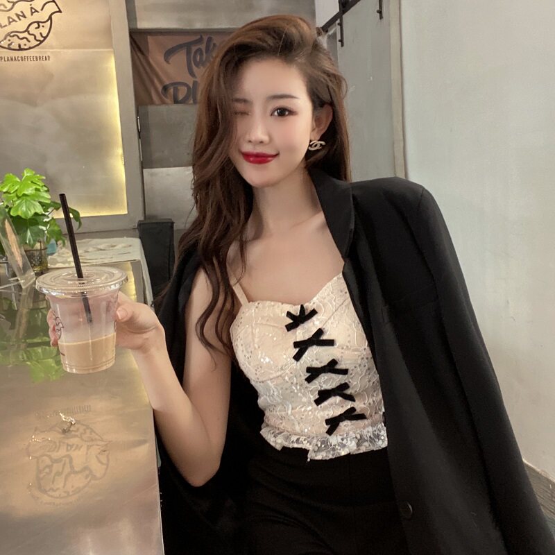 High color pure air lace with black hanging vest female suit sweet baby with chest cushion short coat