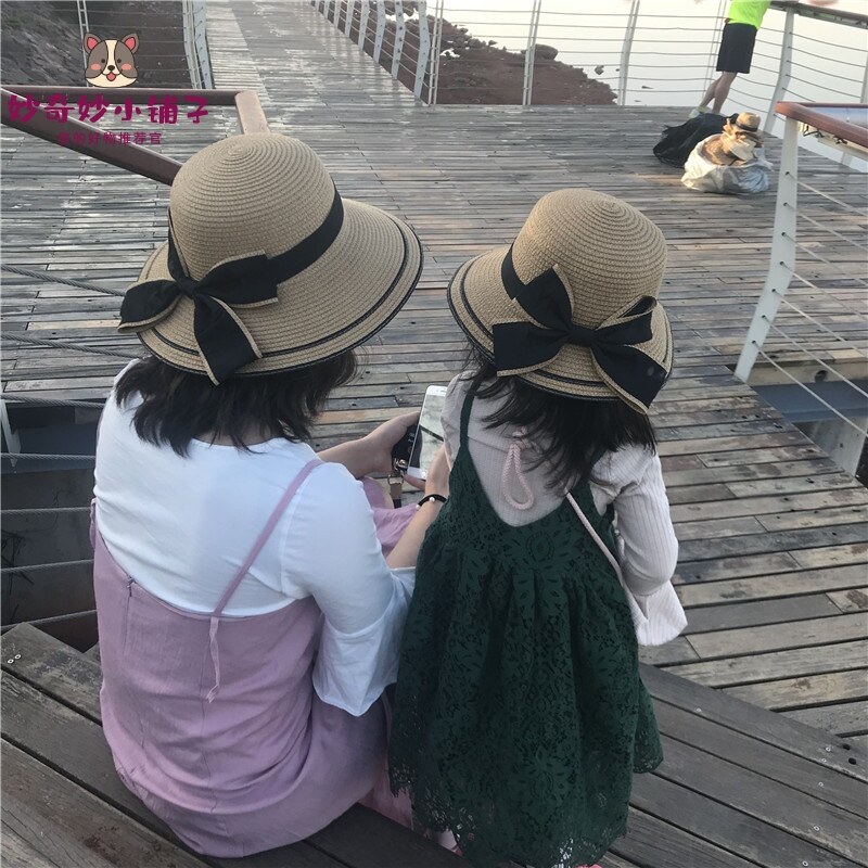 Fan-style floating with straw hat parent-child hat mother-daughter big hat peak summer out for sunscreen sunscreen hat children's hat can