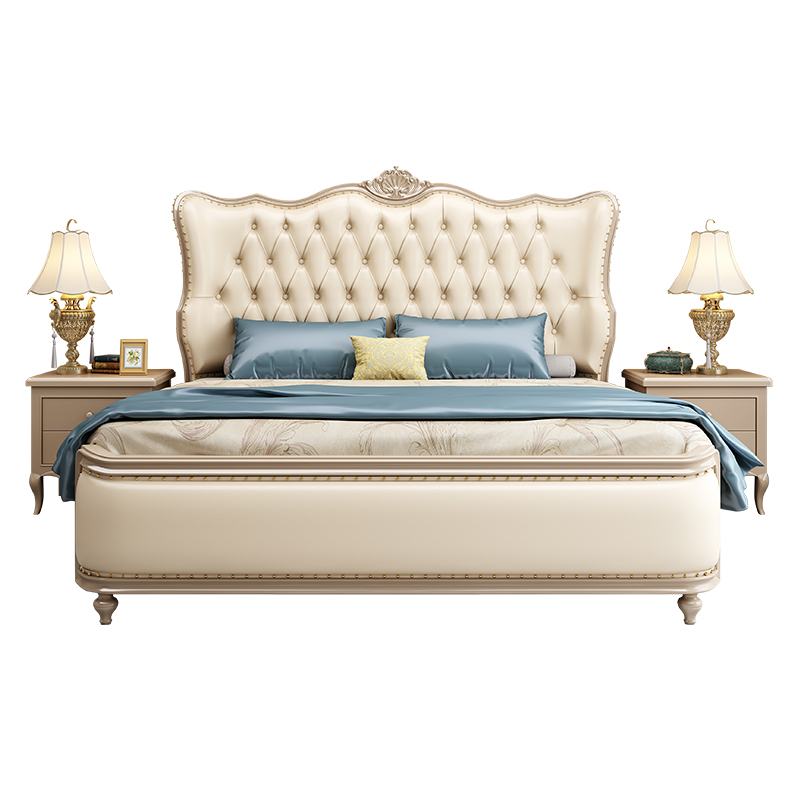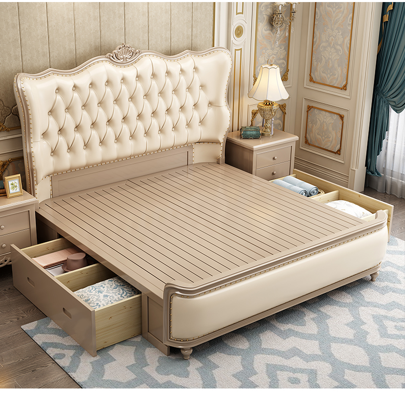 American solid wood bed master bedroom 1 8 m European style bed extravagant upscale large bed double wedding bed genuine leather bed light extravagant modern