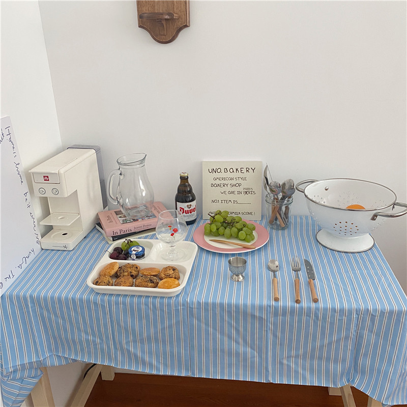 Po-Homemade Korea ins Color Striped Tablecloth French Romantic Retro Background Cloth Home Dining Cloth