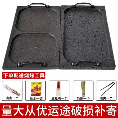 Tengchong natural volcanic stone baking tray with handle charcoal grilled seafood steak meat hotel outdoor home Korean slate