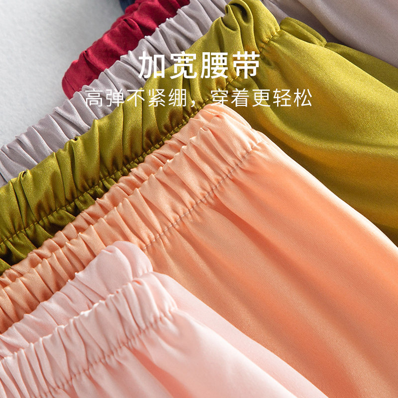 Sleeping Pants Woman Summer Ice Silk Slim Fit Simulation Silk Ultrathin Outer Wear Casual Home Shorts Silk Slip Big Pants-Taobao