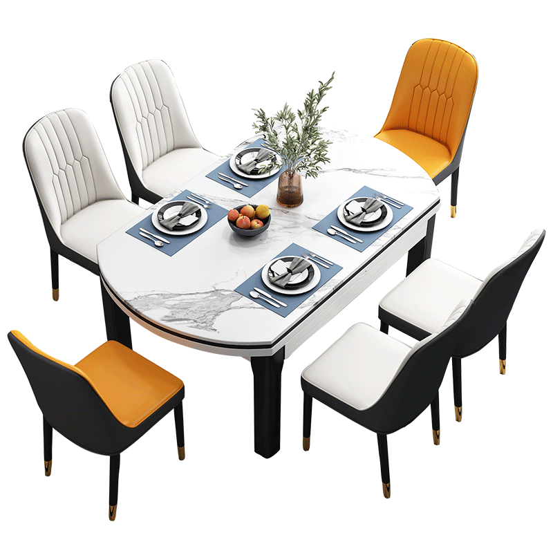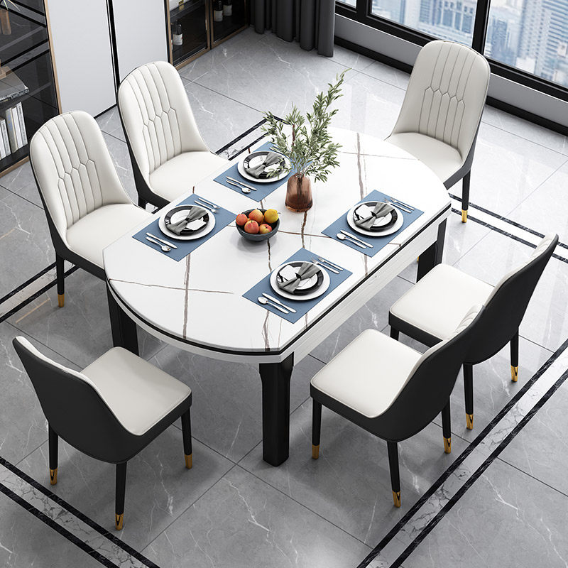 Simple modern rock plate dining table retractable folding small household dining table solid wood dining table and chair combination round table