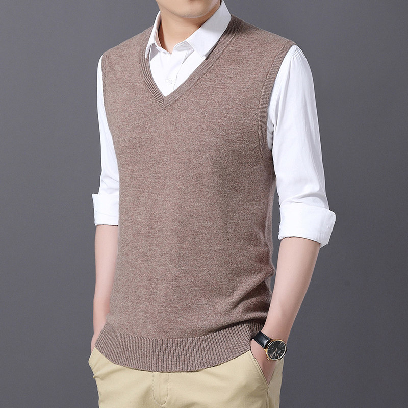New pure cashmere sweatshirt V collar sleeveless knit waistcoat male 100% mountain cashmere business casual kan shoulder pure color vest