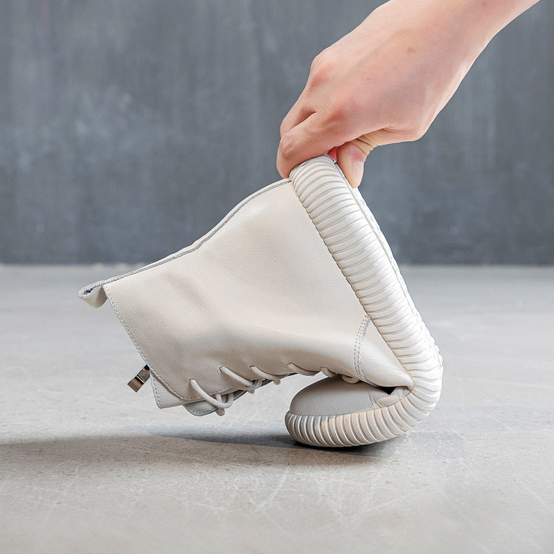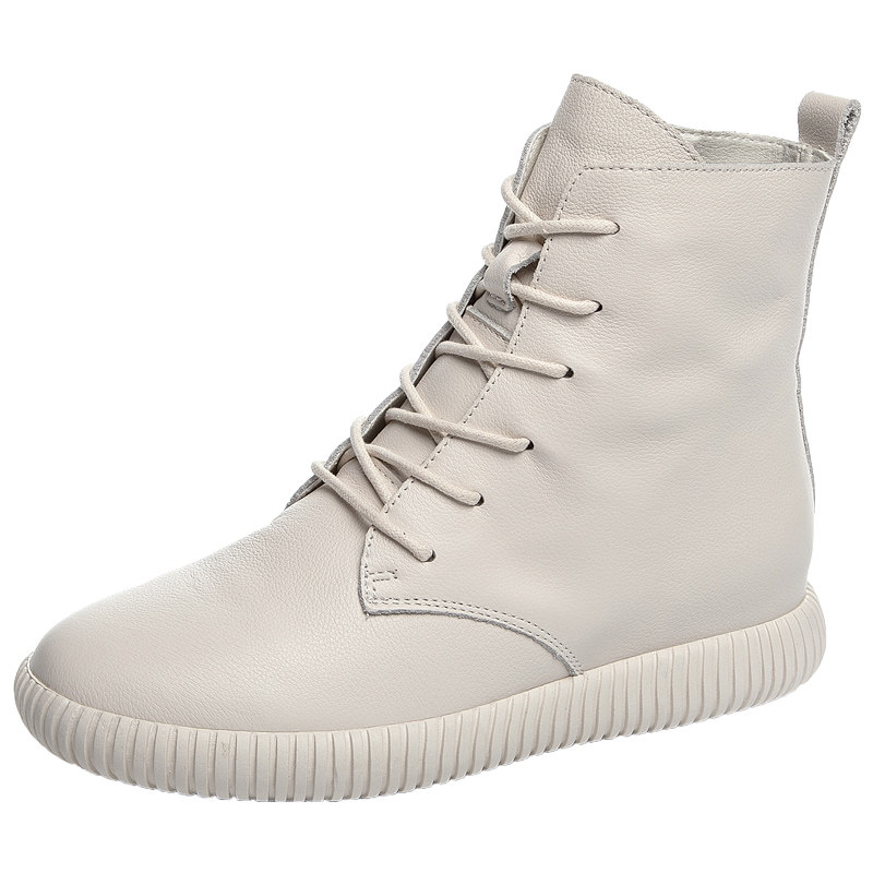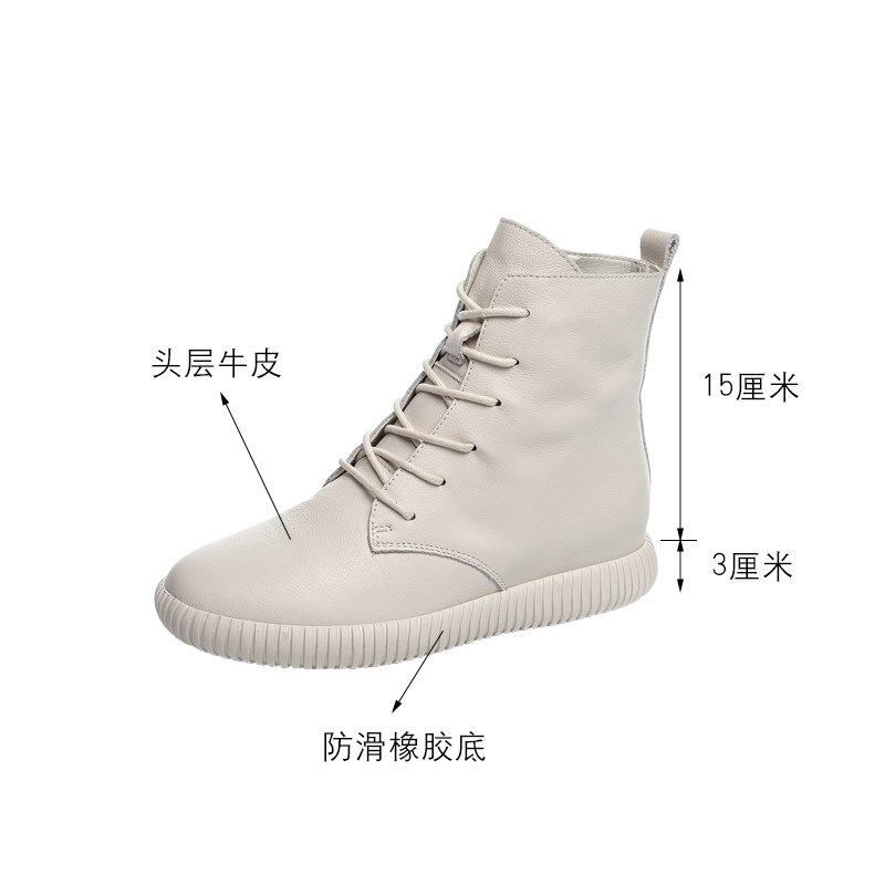 Leather Flat Short Boots Women's Spring and Autumn Single Boots Casual Beige Boots Women's Boots Top Layer Leather Soft Sole Soft Leather Martin Boots