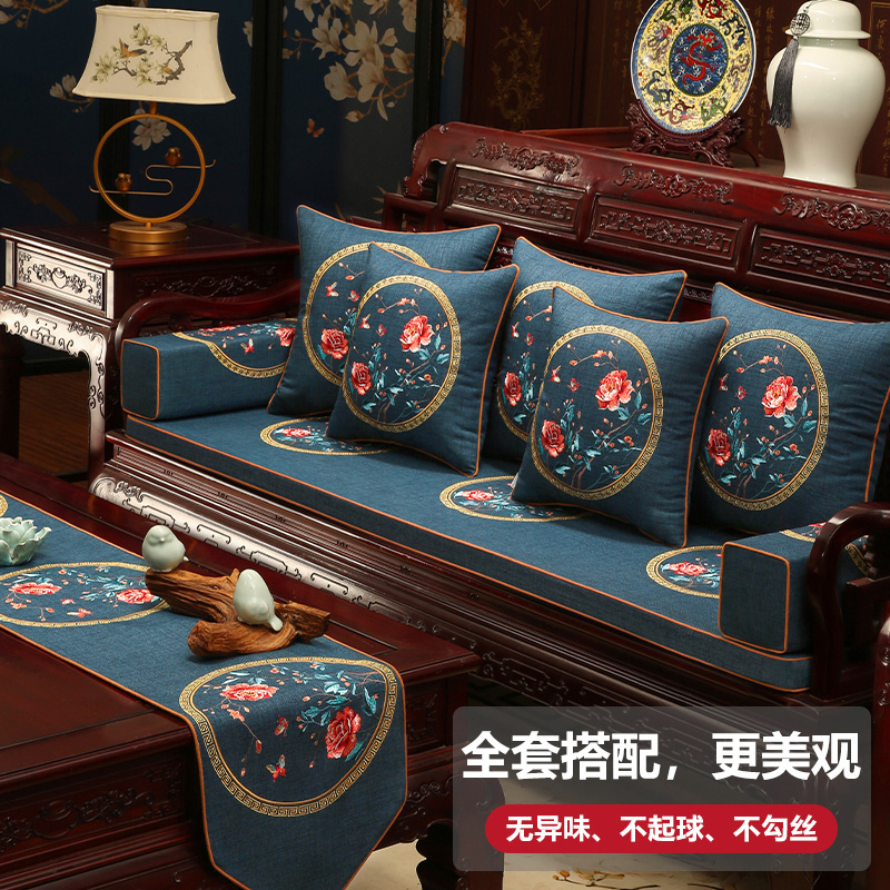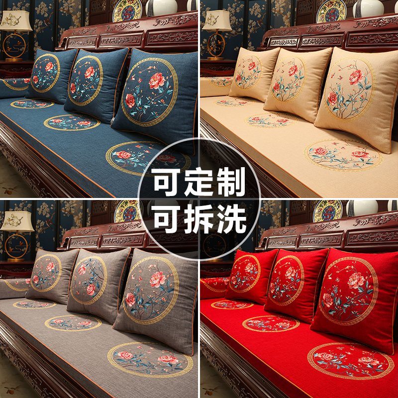 Sofa cushion new Chinese style fabric anti-slip cover simple modern four seasons universal high-end solid wood furniture cushion customization