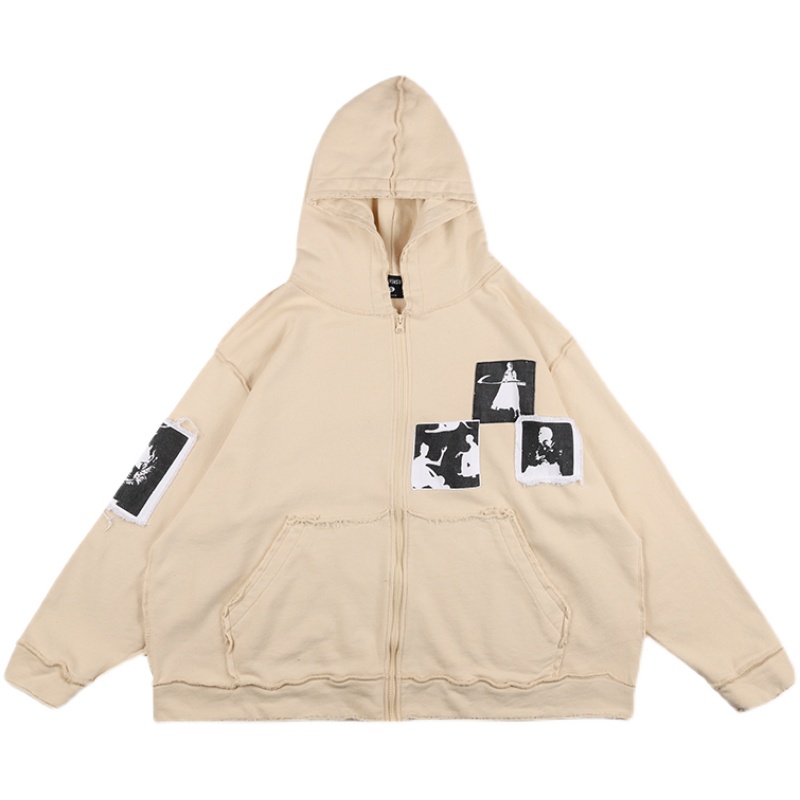 New factors national tide patch people like loose hooded sweatshirt men autumn and winter style couple cardigan jacket high street tide brand
